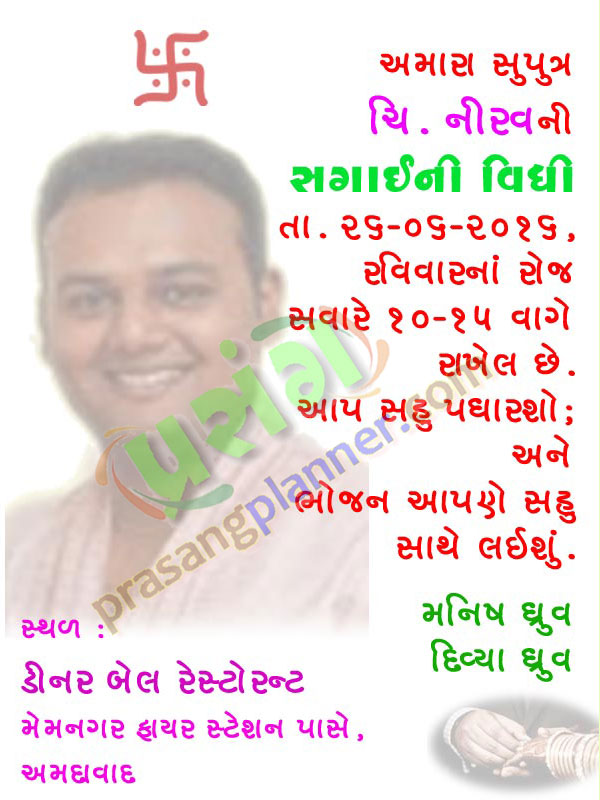 અહિયાં આ ડાઉનલોડ વિભાગમાં આપને વિવિધ પ્રકારની અનેક ઉપયોગી સામગ્રી જેવી કે કંકોતરી તૈયાર કરવા માટેનાં જુદા જુદા લખાણ, કંકોતરીનાં સેમ્પલ્સ, પ્રસંગોને અનુરૂપ આમંત્રણ કાર્ડનાં સેમ્પલ્સ, પ્રસંગોચિત શુભેચ્છા પત્ર વિગેરે મળશે.